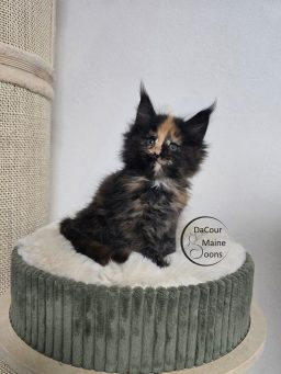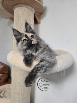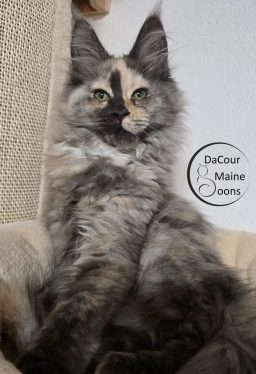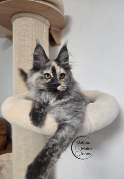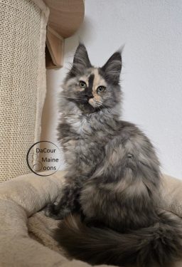 Die bezaubernde Maine-Coon-Dame stammt von einer befreundeten, liebevollen Züchterin und hat unser Herz im Sturm erobert. Mit ihrem ausdrucksstarken Blick, den großen Ohren und ihrem sanften Wesen verkörpert sie alles, was diese wundervolle Rasse ausmacht.