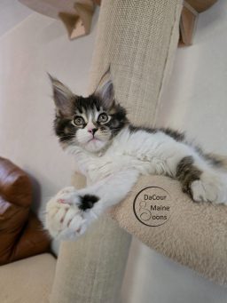 Kaja zeigt bereits früh die typischen Eigenschaften der Maine Coon und stellt eine interessante junge Vertreterin aus unserer Zucht dar.